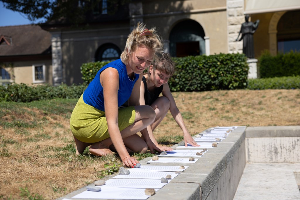 Valerie K. Meyer und ich geben am & im Gemsberg-Brunnen eine Hörprobe unseres gemeinsam geschriebenen Prosastücks „Und überlaut die Zikaden“.
